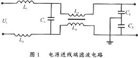 在电源进线端通常采用下图1电路。该电路对共模和差模纹波干扰均有较好抑制作用。